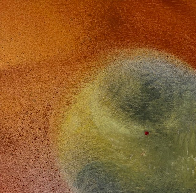 (*) Orbiting Red, 10X10", mixed media on birch panel, 2025