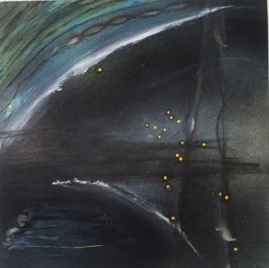 (*) Journey into the Night, 10x10" inches, mixed media on birch panel, 2015