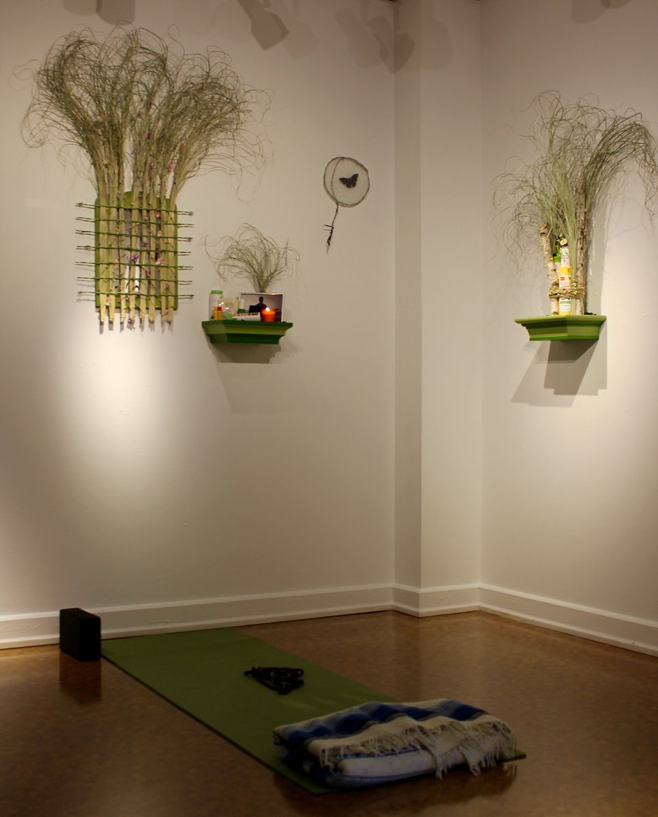 www.kristenmwatson.com/she/“The SHE Project” – part I is a collaborative exhibit created by Vermont multidisciplinary artists Kristen M. Watson and Mary Admasian. The two have a common interest in creating interactive works that explore what women deal with as they transition from youth to seniority with regard to appearance and self-image in the highly visual social media era, where celebrity culture reigns, and where we much more frequently see ourselves and are seen by others. Consequently there is a phenomenon of personal social branding that has emerged. With a nod to the tradition of femmage, installation art constructed of found and saved objects that expresses a female narrative, Watson and Admasian use mirrors, cosmetics, beautification products, and natural elements to address themes around self-confidence, worthiness, and sexual power tied to youth. Watson & Admasian create compelling works that comment on the influence of history, social norms, perception, social media, and vanity on the current state of womanhood.