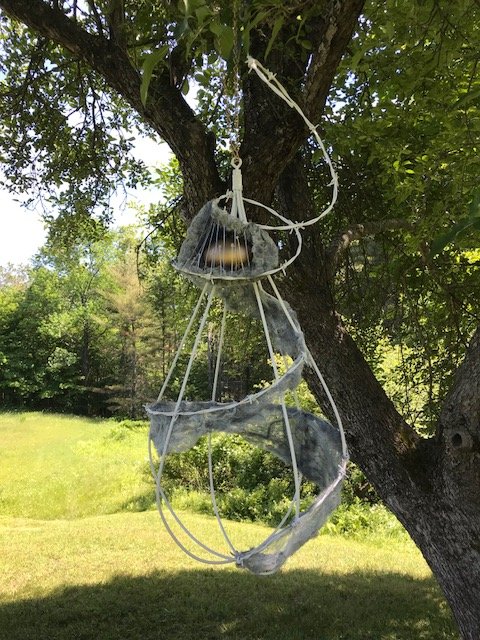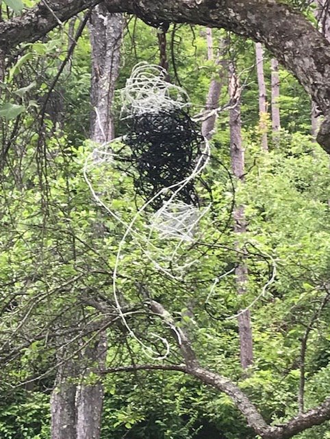 2019-2021 Sculpture Fest- Titled: The Hive, 48"x30"rd 2016 barbed wire, paint, steel chain