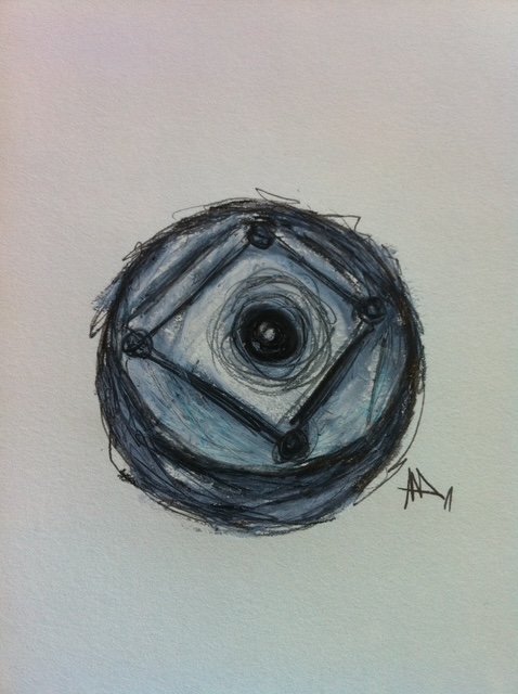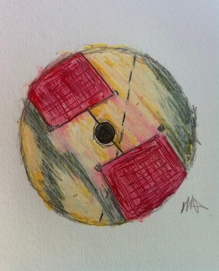 Blue Dot, 10x10" farmed, oil pastel, graphite, colored pencil on paper, 2011