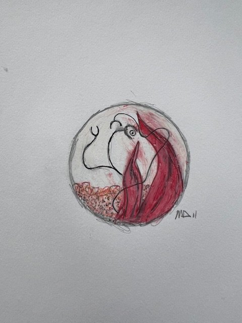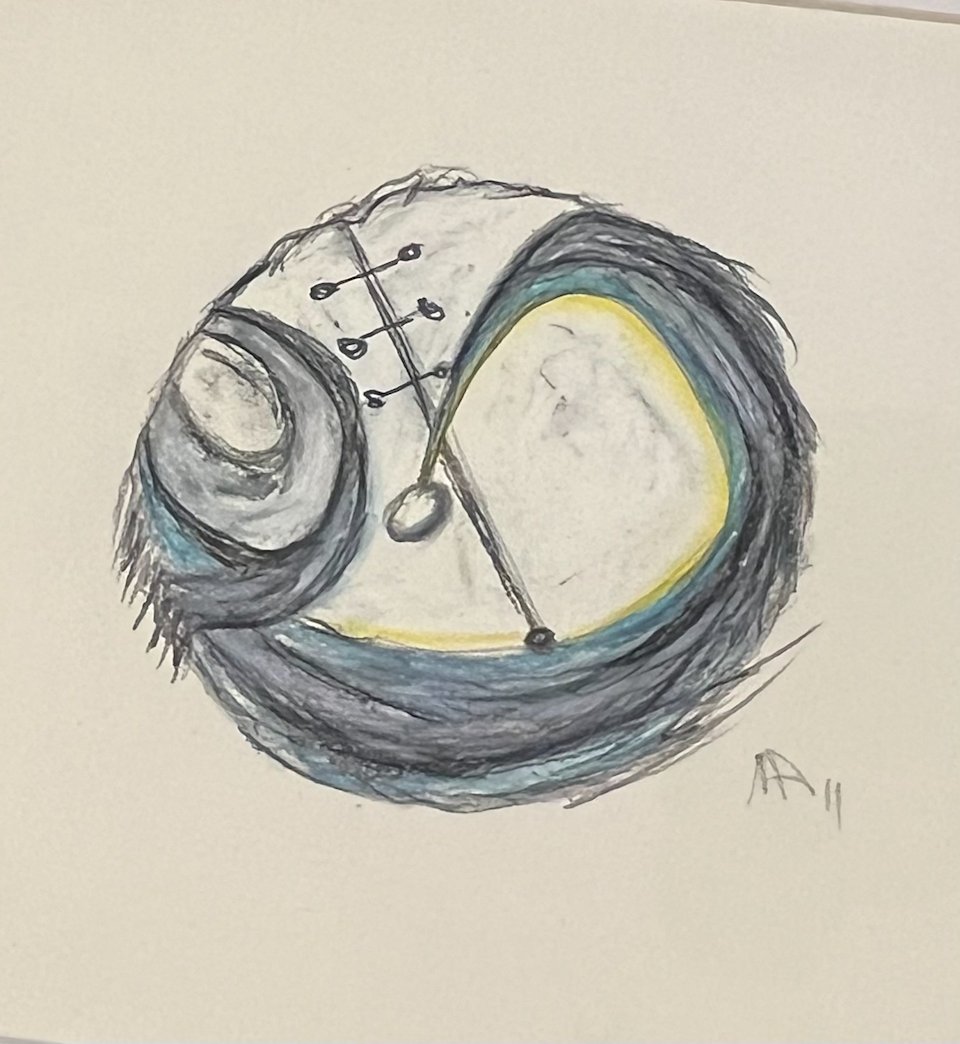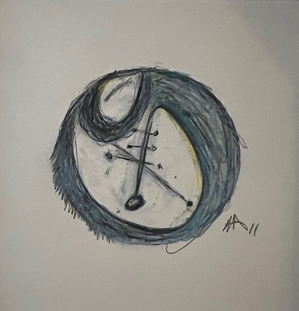 Pondering, 10 X10" framed, oil pastel, graphite, colored pencil on paper, 2011