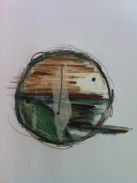 Fractured, 0x10" farmed, oil pastel, graphite, colored pencil on paper, 2011