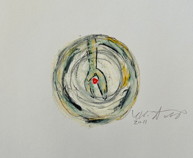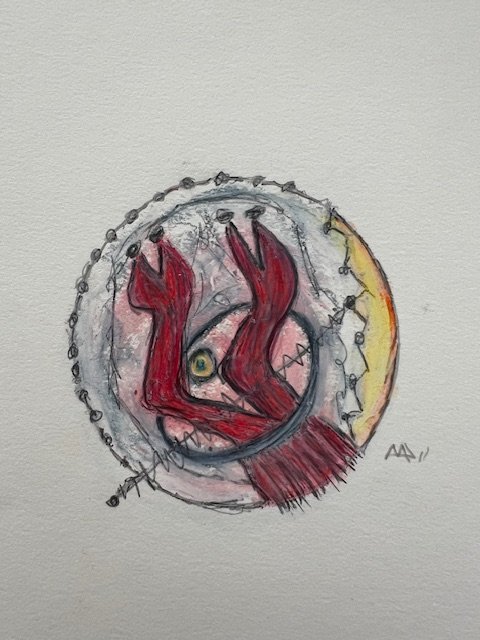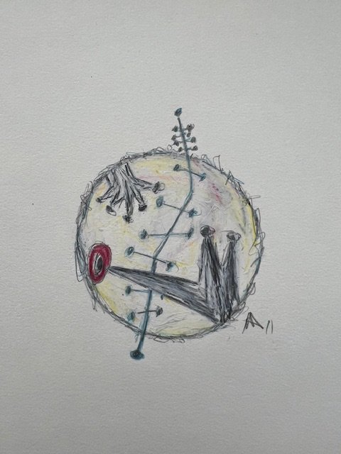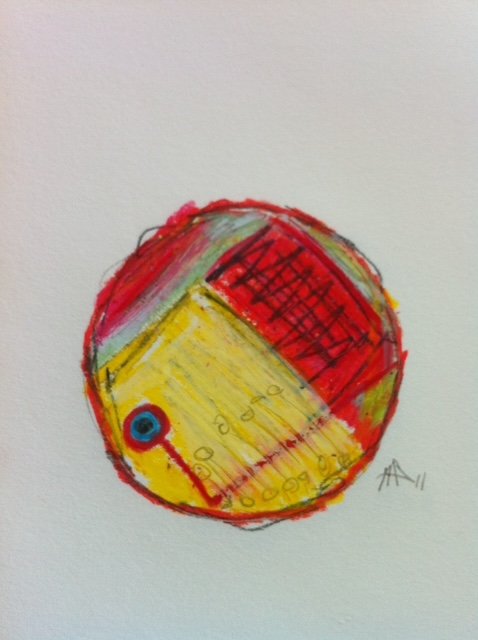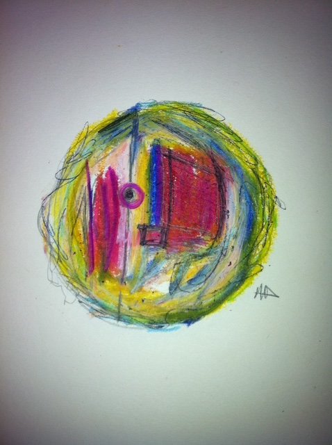 10 X10" framed, oil pastel, graphite, colored pencil on paper, 2011