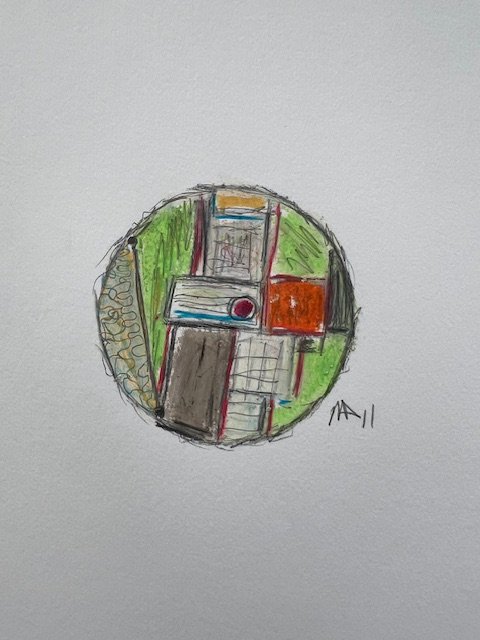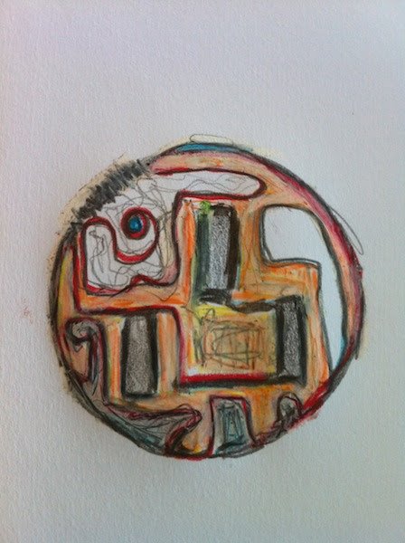 Blocked, 10 X10" framed, oil pastel, graphite, colored pencil on paper, 2011