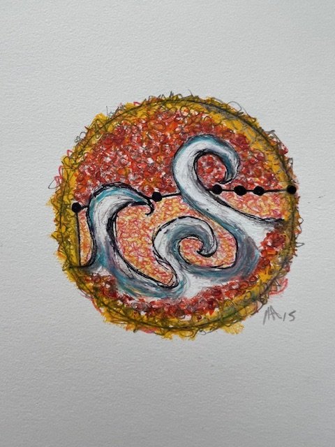 Wave, 10X10" framed, oil pastel, graphite, colored pencil on paper, 2011