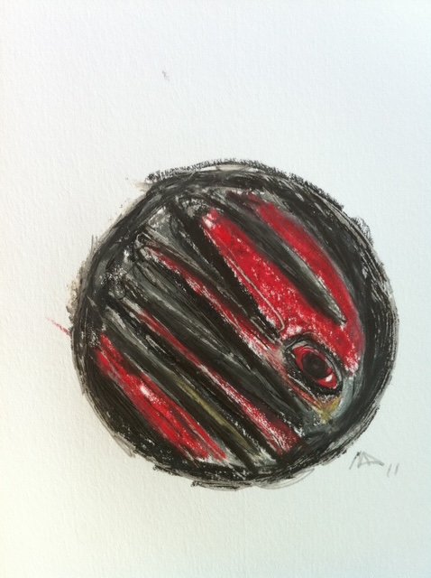 RED, 10X10" framed, oil pastel, graphite, colored pencil on paper, 2011