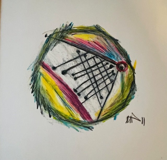 Shared Connection, 10X10" framed, oil pastel, graphite, colored pencil on paper, 2011